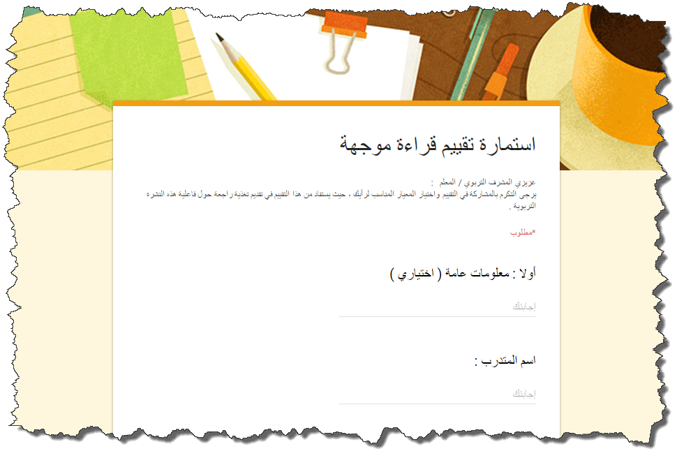 الإشراف التربوي استمارة تقييم المعلم من قبل المشرف